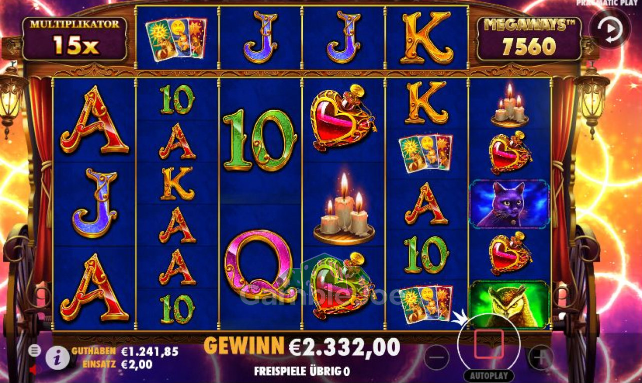 When you step into her carriage and the reels start spinning, you will certainly uncover your destiny. A variety of mystical symbols stand guard over the reels – from black cats to love potions.
